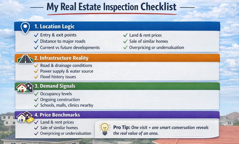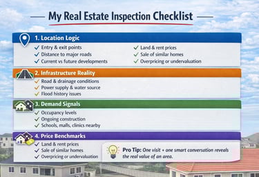 Visiting a neighborhood in Lagos — or even inspecting it virtually—requires more than scrolling listings. Over time, I’ve learned there’s a clear framework to understand an area before making decisions.